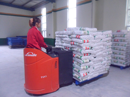 图二:济宁公司储运部员工正在挂面车间操作电动叉车